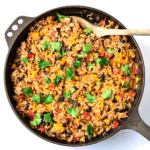 Keyword: gluten free meals, ground turkey, one pan meal, turkey and rice skillet